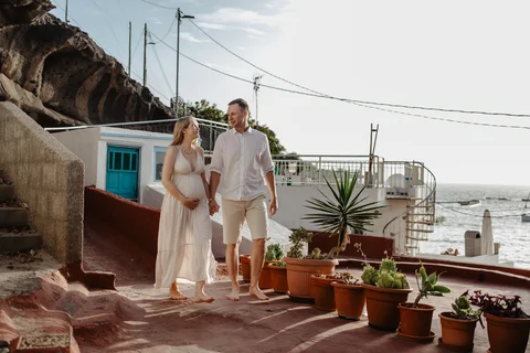 Sesja ciążowa w pięknym miejscu, przy oceanie i podczas zachodzącego słońca